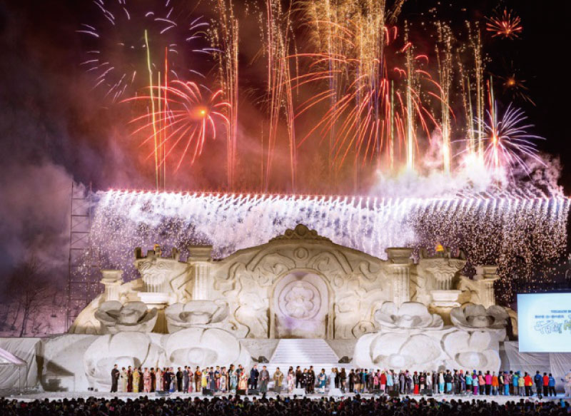 「空の池」 レアンドロ・エルリッヒ アルゼンチン 十日町雪まつりは今から約68年前の昭和25年2月4日に開催されました。「雪を友とし、雪を楽しむ」という住民の自発的な思いから生まれたこの雪まつりは、冬の厳しさも美しさも知り尽くし、雪に打ち克つ気概が生んだ発想です。 こうした発想の背景には、終戦以降、製造が禁止されていた絹織物製品の生産が再開され、地元産地を元気にさせるような社会的、経済的状況がありました。第1回の雪まつりは、十日町文化協会が主催し、雪の芸術展や雪具供養の火の周りで十日町小唄を踊る雪中カーニバルやスキー駅伝大会などが主なイベント内容でした。このように日本で最初に住民が主体となって雪まつりを行ったことから、十日町市は、「現代雪まつり発祥の地」として知られています。